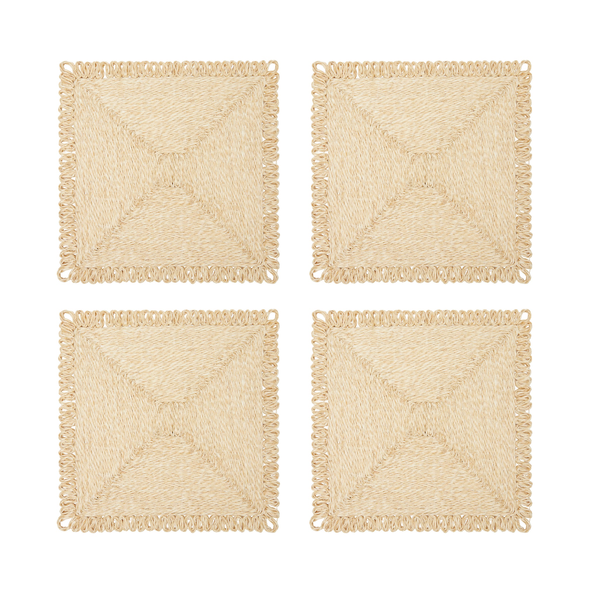 Add a touch of elegance to your tablescape with the square Loopy placemats. Featuring a natural weave design, these placemats are crafted from durable abaca, offering both style and functionality for everyday use. Sold in a set of 4, these placemats are easy to clean and perfect for casual family meals or more formal gatherings. Their versatile design complements any décor, making them an ideal addition to your kitchen or dining room. They manage to be beautiful, sophisticated, and simple all at once. Available in six beautiful colors.